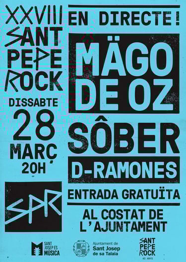 El Ayuntamiento de Sant Josep ha presentado hoy el programa oficial de las Fiestas de Sant Josep 2026, que este año regresan con la recuperación del XXVIII Sant Pepe Rock el 28 de marzo. El evento contará con el mítico grupo Mägo de Oz como cabeza de cartel.